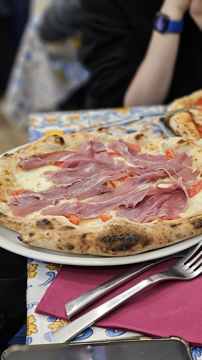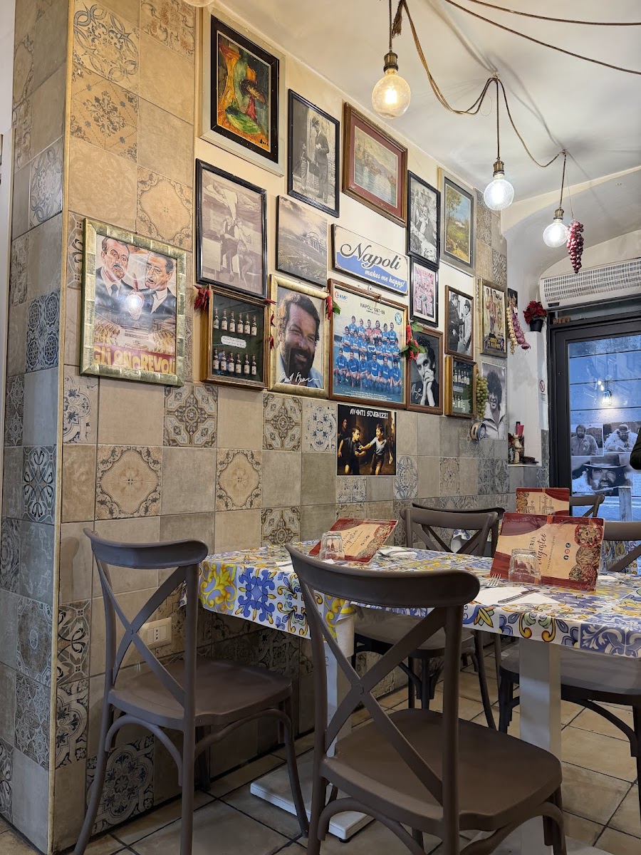 Food was great. I had a lovely pizza. The manager was a lovely, kind, helpful man. Maybe I caught the other servers on a bad night. They weren't even slightly friendly. But hey, they were professional. Unusual tbh in Naples. Lot's of friendly people. But everything was fast and delicious. Great place. Go try. Great spot. Love the Sofia Loren photos